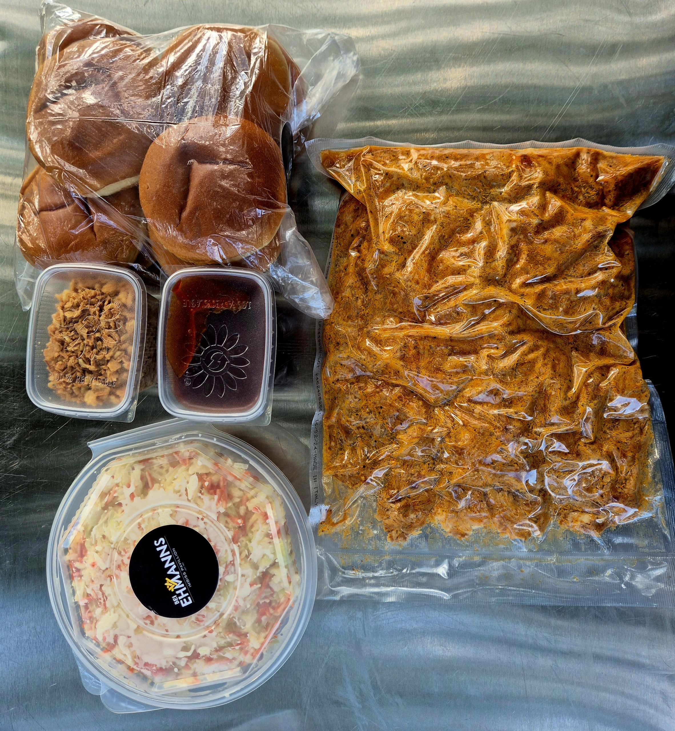 Das Pulled Pork wird in einem Vakuumbeutel verpackt und sicher verschlossen. Du kannst es ganz einfach bei 80 – 100 Grad im Backofen für 1 – 1,5 Stunden erhitzen und im Anschluss servieren.